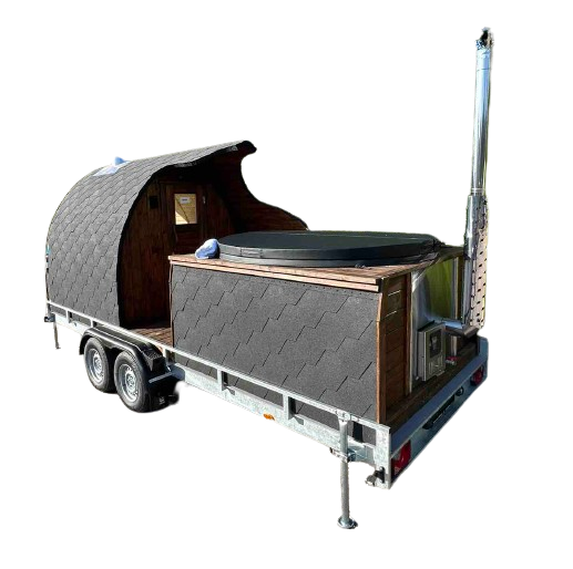 Fasssauna Pod mit Jacuzzi auf Anhänger