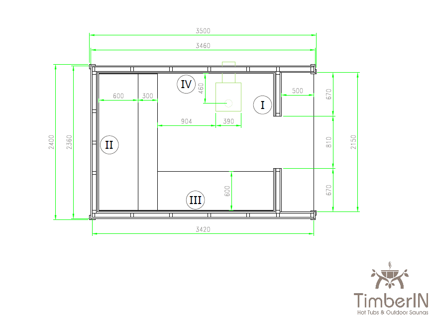 - Abmessungen und Gewicht: Das Saunahaus misst 3,1m in der Länge, 2,1m in der Breite und 2,62m in der Höhe, mit einem Gewicht von 1260 kg.